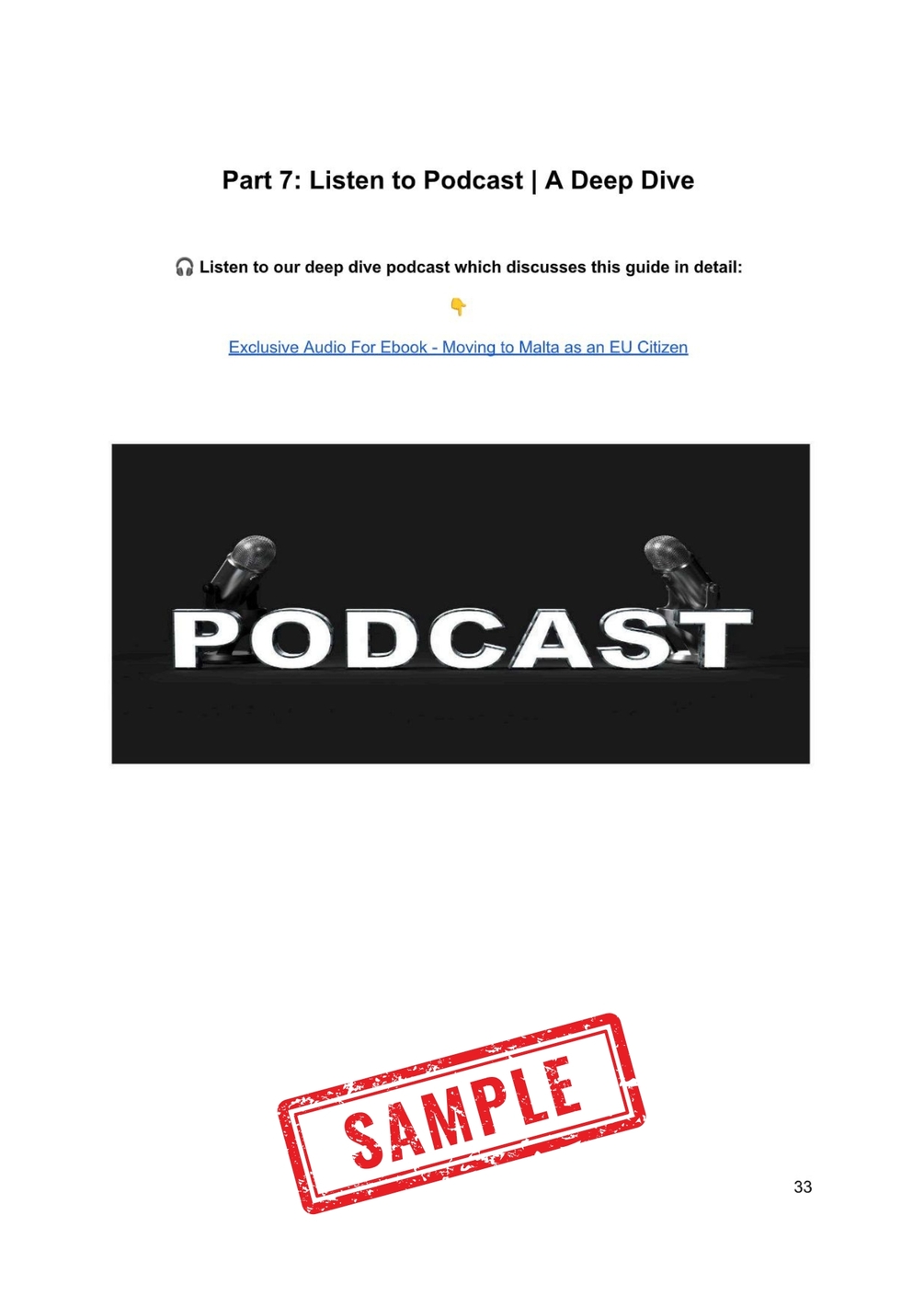 This e-guide contains most of what you need to know in order to turn your dream into reality. Whether you are looking to work, study or settle in Malta, this guide can help you better understand the steps involved. With a hyperlinked table of contents, this PDF can also be viewed offline and on any device. All the information you need in your pocket! As a bonus, this guide also contains a link to an exclusive deep-dive podcast to further help your understanding.